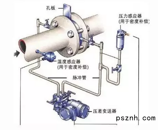 通過(guò)引壓管將差壓信號(hào)引入差壓變送器,差壓變送器將差壓信號(hào)送入流量積算儀,積算儀將差壓信號(hào)換算成流量信號(hào)。同時(shí)通過(guò)溫度和壓力傳感器測(cè)出蒸汽的溫度和壓力,積算儀根據(jù)當(dāng)時(shí)的溫度和壓力計(jì)算出補(bǔ)償后的流量。