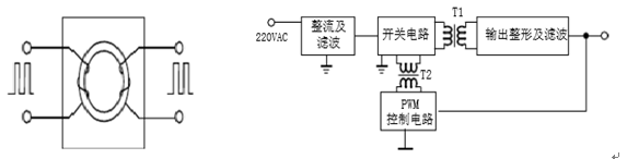 脈沖變壓器是一種寬頻變壓器,初級(jí)與次級(jí)隔離。前級(jí)與后級(jí)互不成回路,要求波形傳輸時(shí)不失真,也就是要求波形的前沿,頂降都要盡可能小。由于脈沖變壓器傳遞輸入、輸出脈沖信號(hào)時(shí)不傳遞直流分量,因而在測(cè)量控制系統(tǒng)中得到了廣泛應(yīng)用。一般來說,脈沖變壓器的信號(hào)傳遞頻率在1kHz~1MHz之間,新型的高頻脈沖變壓器的傳遞頻率可達(dá)到10MHz。典型電路如下(a)、(b)圖所示。