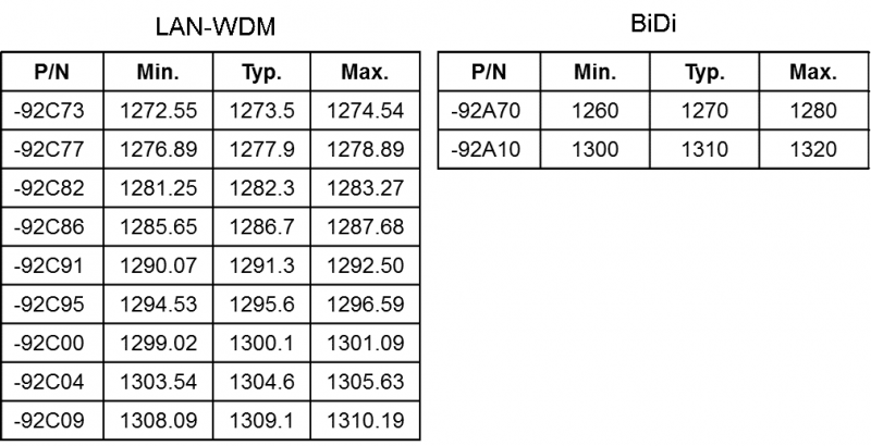 而25G LAN-WDM EML TOCAN ML760B54-92x應用于40公里以內的5G無線網絡,溫度范圍 達到-40℃~+95℃;可用25.8Gbps NRZ 調制;其出光功率和消光比分別為0 to +5dBm、 >+5dB;TEC功耗0.5W(標準值),工作溫度為 -40℃~+95℃。