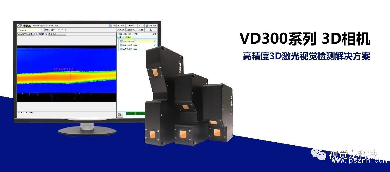 視覺龍自主研發的VD300系列3D相機,通過激光三角測量法與新型成像技術相結合,可測量物體的高度差異或共面度。還可與龍睿視覺平臺相連,將2D視覺技術與3D視覺技術完美融合,可進行全面的質量檢測。