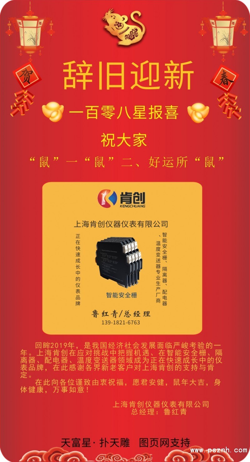 在此感謝各界新老客戶對(duì)上海肯創(chuàng)的支持與肯定。在此向各位謹(jǐn)致由衷祝福,愿君安健,鼠年大吉,身體健康,萬事如意!