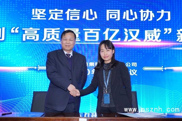張瀟君總裁與各子公司代表簽訂了2020年目標責任書,鞭策和激勵各子公司在2020年堅定信心、同心協力,共同開創“高質量百億漢威”新局面。