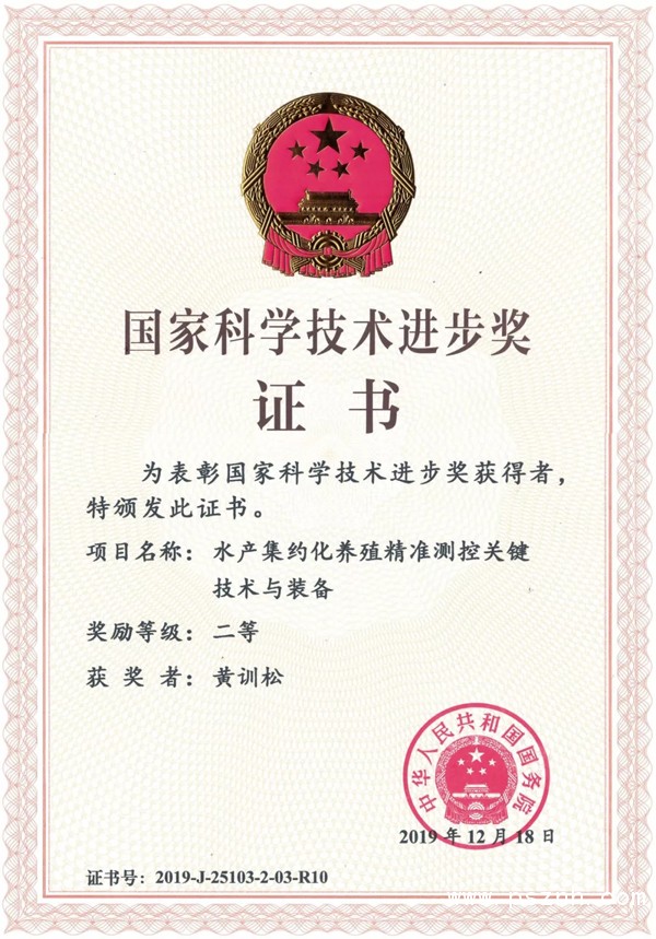 同時,福建上潤精密儀器有限公司黃訓松董事長《水產集約化養殖精準測控關鍵技術與裝備》項目獲得2019年度國家科學技術進步獎個人獎。
