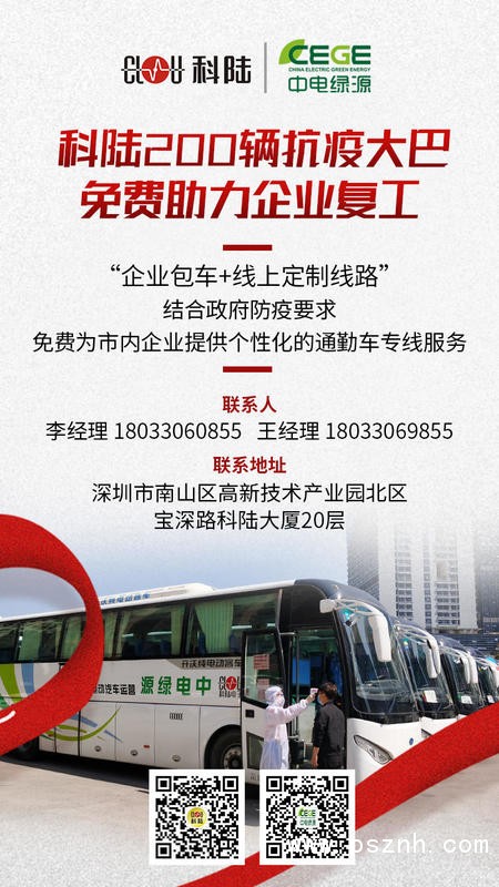 深圳市中電綠源純電動汽車運營有限公司是擁有600輛純電動大巴的專業運營公司,首批調配出車況最好的200輛大巴,采用“企業包車+線上定制線路”的方式,結合政府防疫要求,免費為市內企業提供個性化的通勤車專線服務,減少企業員工乘坐公共交通工具的交叉感染風險。
