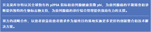 雙方將共同就中國前列腺癌診療一體化的建設開展長期戰略合作,旨在為提高中國前列腺癌的早期診斷率、規范前列腺癌的治療及隨訪及改善前列腺癌患者的生存率做出努力。該合作將依托雙方在中國的技術研發和市場優勢,合力搭建合作伙伴交流平臺,打造健康新生態,尋求多方合作共贏,探索前列腺診療及腫瘤生態圈跨界合作的全新模式。