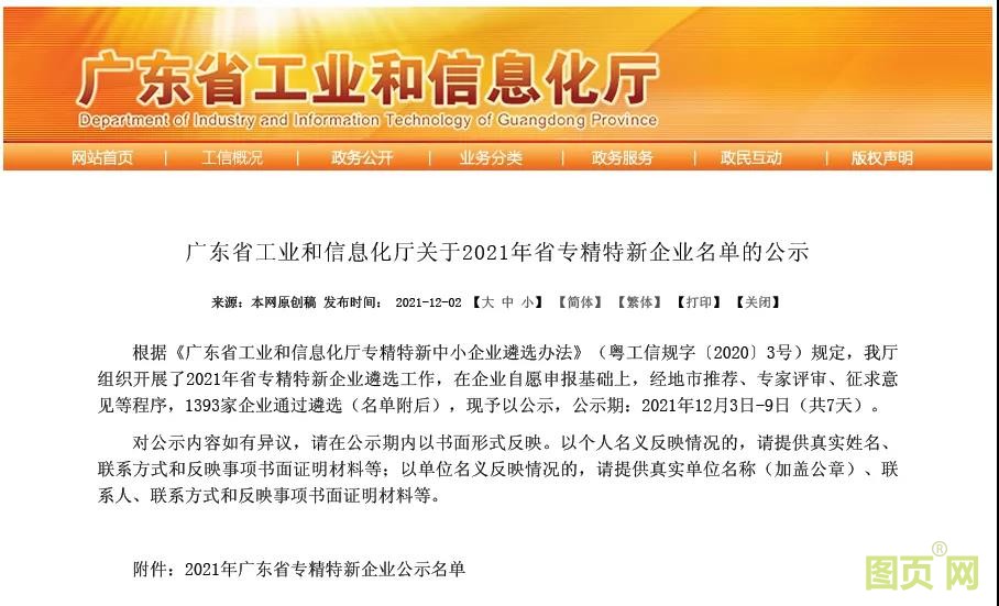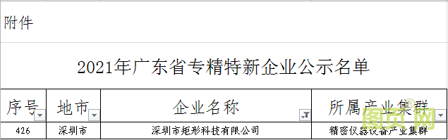 2021年12月2日,經廣東省工信廳公示,矩形科技入選2021年省級專精特新企業!