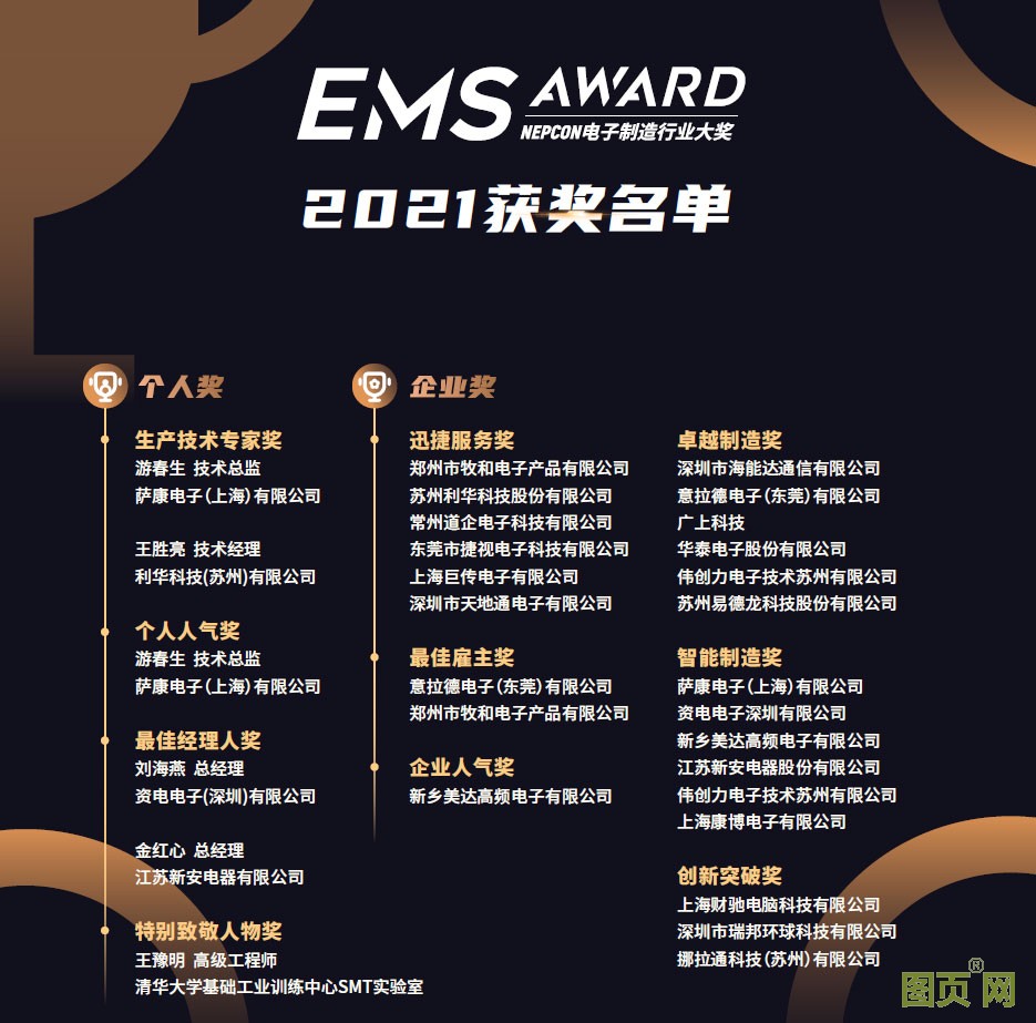 和首屆評審活動相比,第二屆EMS Award獎項設置進一步創新,評獎標準也將繼續升級。獎項由EMS聯盟、行業協會及NEPCON電子展主辦方共同發起,由電子制造行業專家及大眾評審共同評選。專家評審將根據企業的規模與營收、研發能力、制造能力、品控流程、自動化水平、生產效率等25個維度全方位為企業評分。值得一提的是,EMS Award新增了2021電子制造服務行業杰出工程師獎項,將為優秀的行業工程師提供了展現專業技能和個人風采的平臺,讓很多優秀的行業工程師有機會從幕后走到臺前為人所知,得到業內專家的認可以及同行的贊譽,更為自身的職業發展積聚了寶貴資本。
