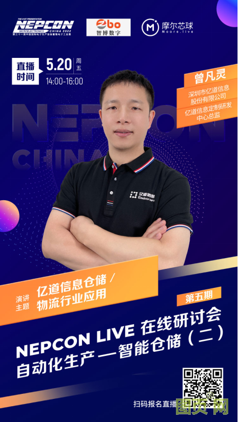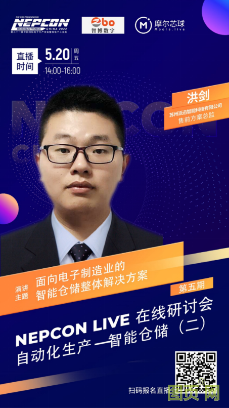 5月20日(周五)下午2點,NEPCON 攜手合作伙伴智博數字聯合舉辦第五期 NEPCON LIVE 在線研討會:自動化生產--智能倉儲(第二期),本次活動將圍繞倉儲集成方案、物流解決方案、工廠數字化整體解決方案為聽眾帶來案例及技術分享,助力于提升行業在倉儲物流環節的整體自動化、數字化及智能化水平。