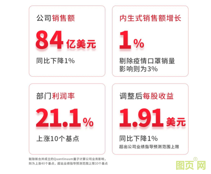 霍尼韋爾近日公布了2022年第一季度業績。公司第一季度銷售額為84億美元,同比下降1%,內生式銷售額增長1%,部門利潤率上漲10個基點至21.1%。預計2022年全年銷售額將在355億美元到364億美元,高于公司此前354億美元到364億美元預期。