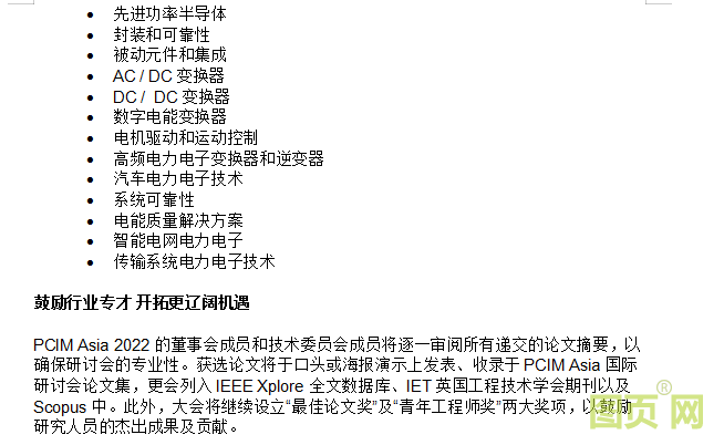 的前沿研究成果。PCIM Asia 國際研討會是業界新產品和新技術的風向標,業界能通過此