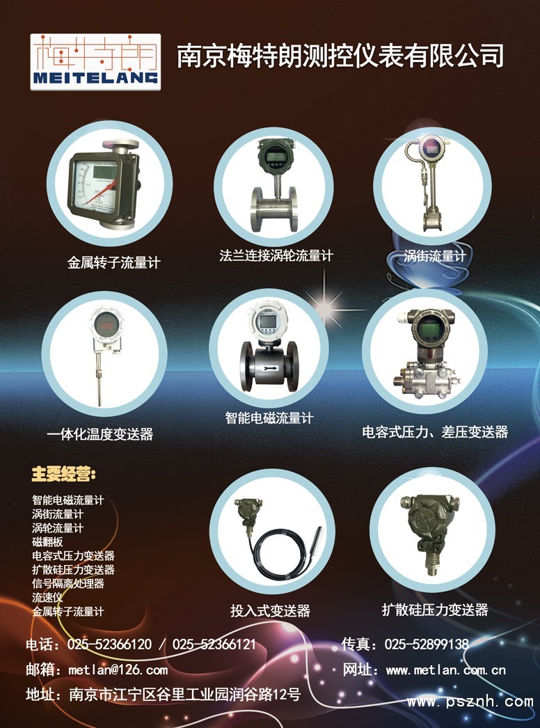 南京梅特朗測控儀表有限公司,坐落于蘊含豐富歷史文化的六朝古都——南京,是專門致力于工業過程自動化 控制、測量儀表(現場壓力、溫度、液位、流量以及I/O信號通道安全柵、隔離器、配電器等二次電動單元組合儀表)的設計、開發、制造、銷售及工程設計施工的生產型高科技企業。產品廣泛運用于電力、化工、冶金、釀造、石油天然氣、紡織、水利、環保等各個行業。