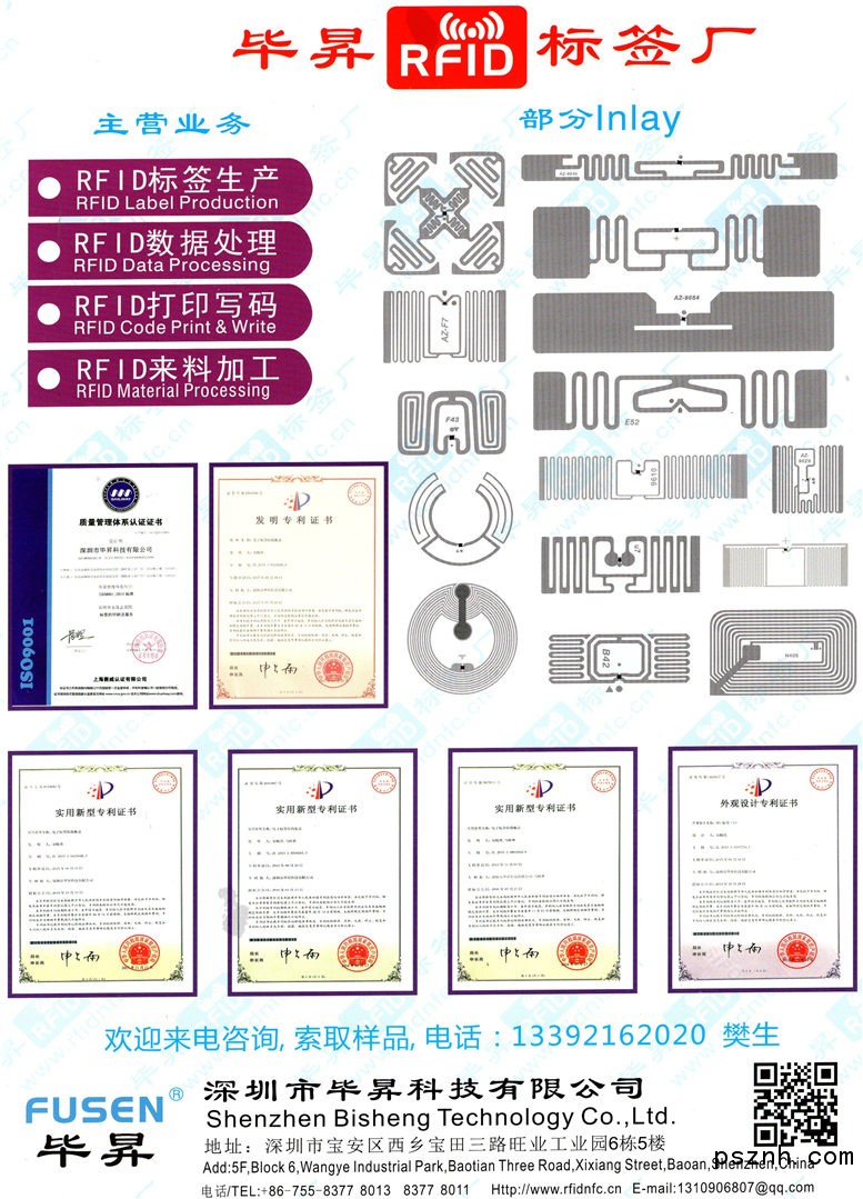 深圳市畢昇科技有限公司最早成立于2002年,一直致力于自動識別技術產品的銷售和應用。公司前期的業務重點為條碼打印機、條碼掃描器、數據采集器、碳帶、標簽的銷售和應用,自由工廠生成標簽、碳帶。自2012年起,公司成立了RFID業務部,負責RFID打印機、RFID標簽、RFID讀寫器的銷售和應用推廣,公司還購買了生產RFID標簽的專用設備生產電子標簽,擁有印刷、打印條碼、噴碼、激光刻碼等整套的生產設備和工藝,能滿足不同客戶的多種需求。公司生產的電子標簽、電子票證、RFID證卡已經銷往歐美多國。