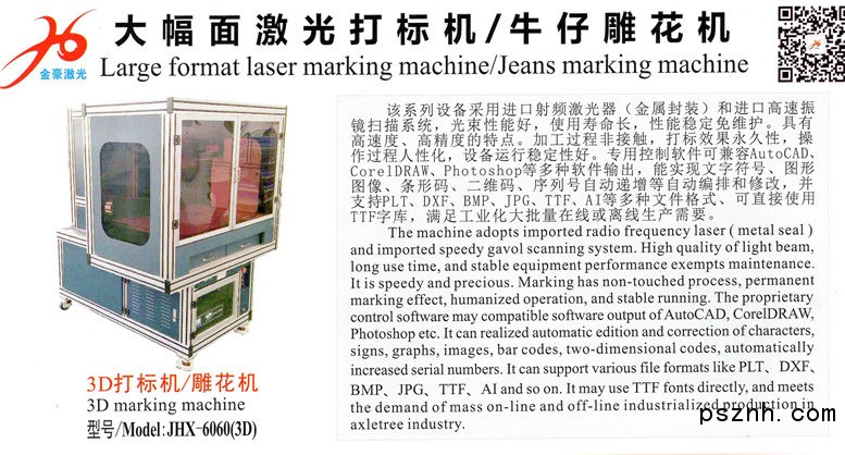 這些不同種類、不同型號的激光設備已經廣泛應用于激光加工領域,為客戶帶來了方便和實惠,受到客戶的高度評價。金豪公司稟承“熱情、誠信、快捷、高效”的服務理念,堅持創建“三心”服務目標機制,建立了一套健全的客戶服務體系,確保公司能夠為客戶提供全方位的售前、售中和售后服務,切實解決客戶的后顧之憂!真正做到讓客戶放心購買、安心工作、開心賺錢。 一至八頭激光切割機 提升加工產能 攝像定位 兩點定位 尋邊定位顛覆整個商標 印標 繡標行業 切割繪圖一體機帶來整個行業革命廣告誤擾!