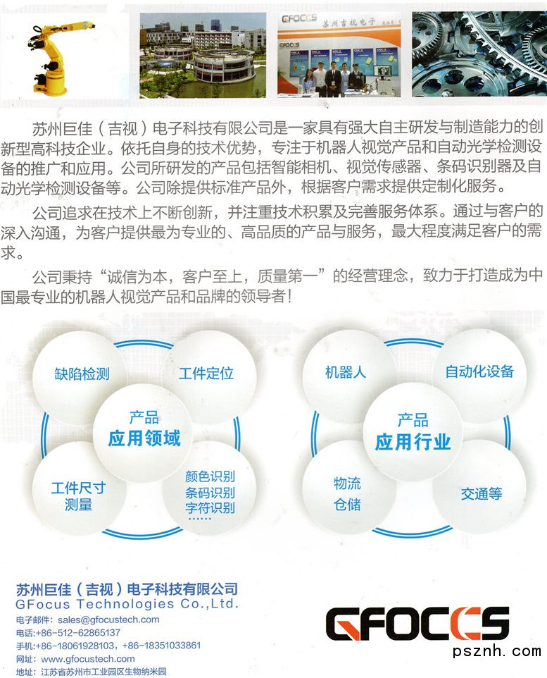 蘇州巨佳電子科技有限公司是一家具有強大自主研發與制造能力的創新型高科技企業。依托自身的技術優勢,專注于機器人視覺產品和自動光學檢測設備的推廣和應用。公司所研發的產品包括智能相機、視覺傳感器、條碼識別器及自動光學檢測設備等。公司除提供標準產品外,根據客戶需求提供定制化服務。