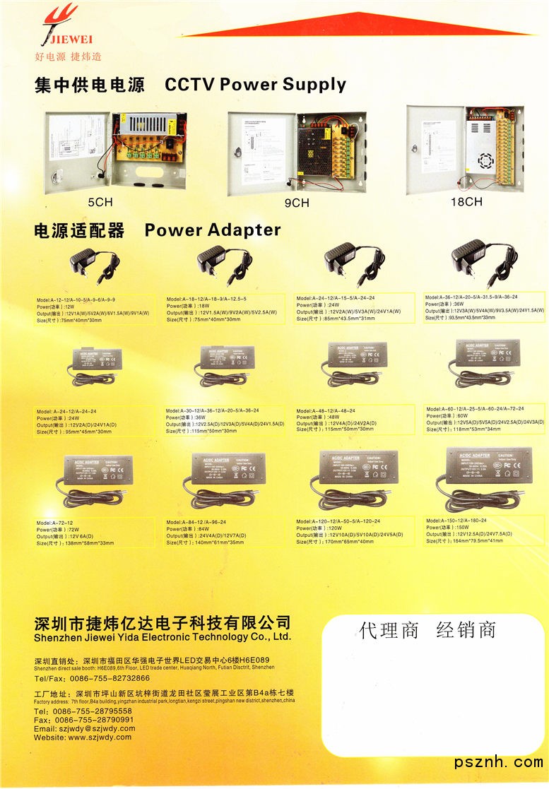 公司現年生產開關電源10W-12000W(0-5V,0-12V,0-15V,0-24V,0-30V,0-36V,0-48V,0-50V,0-60V,0-90V,0-110V,0-220V,0-250V單路及雙路,三路,四路電源),長條電源40W-360W, 防水電源5W-300W,防雨電源60-400W,電源適配器9W-180W,監控電箱5路9路18路等各類開關電源200多萬臺。公司總部設在深圳,擁有先進的生產設備如全自動波峰焊、全自動插件機、開關電源自動測試系統、RoHS光譜分析儀、EMC測試系統、環境試驗箱、高溫老化房、數據采集儀等。
