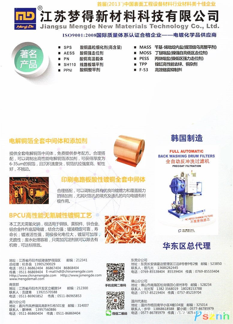 經(jīng)過多年發(fā)展,夢得公司已成功研制出百余種電鍍特殊化學品和多項新型電鍍工藝,在酸性鍍銅、鍍鎳等中間體領(lǐng)域具有領(lǐng)先地位。其中,1,3-ps、丙烷磺酸內(nèi)酯、炔醇及MDG聚乙烯亞胺的衍生物在電鍍行業(yè)得到了廣泛應(yīng)用。在新能源方面,致力于鋰離子電池電解液添加劑的研發(fā)與生產(chǎn),提高鋰離子電池的使用壽命和安全性。