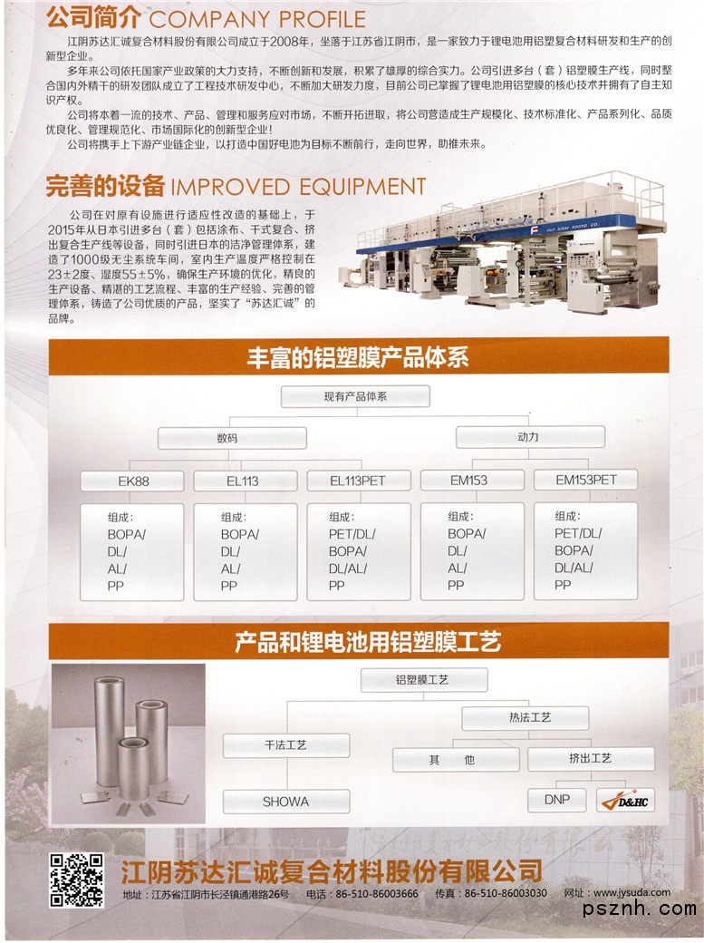 江陰蘇達匯誠復合材料有限公司 鋰電池用復合材料 鋰電池鋁塑膜_CPP卷膜系列_復合膜系列 深圳電池展