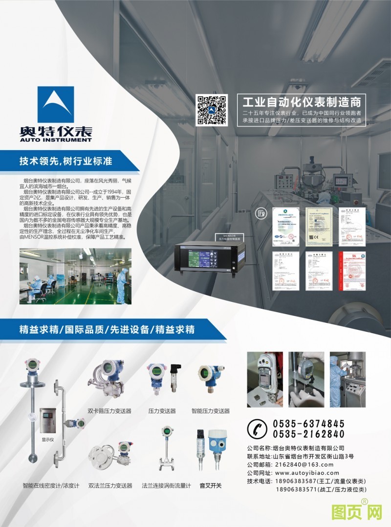 金屬電容傳感器_差壓、壓力 法蘭液位變送器_在線密度計_奧氏T巴均速流量計_渦街_渦輪_電磁流量計_磁致伸縮液位變送器_磁浮子液位計各種物位開關(guān)_多國儀表展-煙臺開發(fā)區(qū)奧特儀表制造有限公司點擊:2842 評論:0 查看原圖 |