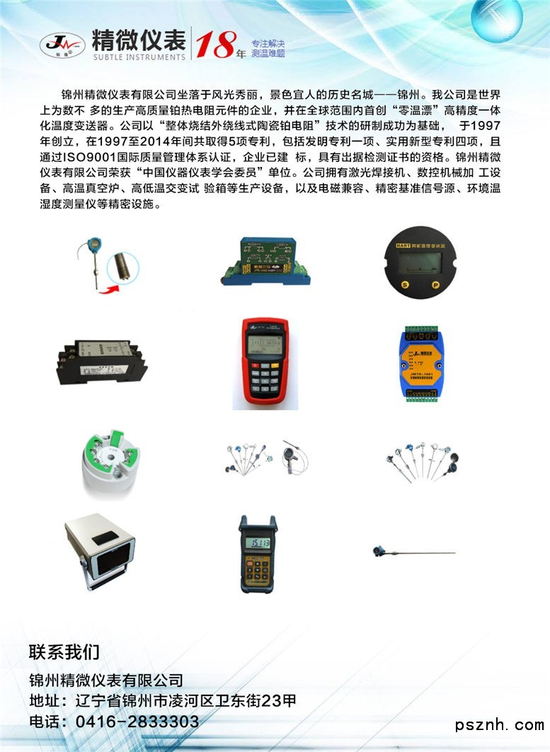具有生產高質量、高精度的工業傳感器和儀器儀表的能力。目前,使用我公司產 品的用戶已達兩千多家。“只要用上錦州精微的產品的用戶必將是回頭客”。我公司的宗旨是“以質量求發展,以信譽贏天下”。