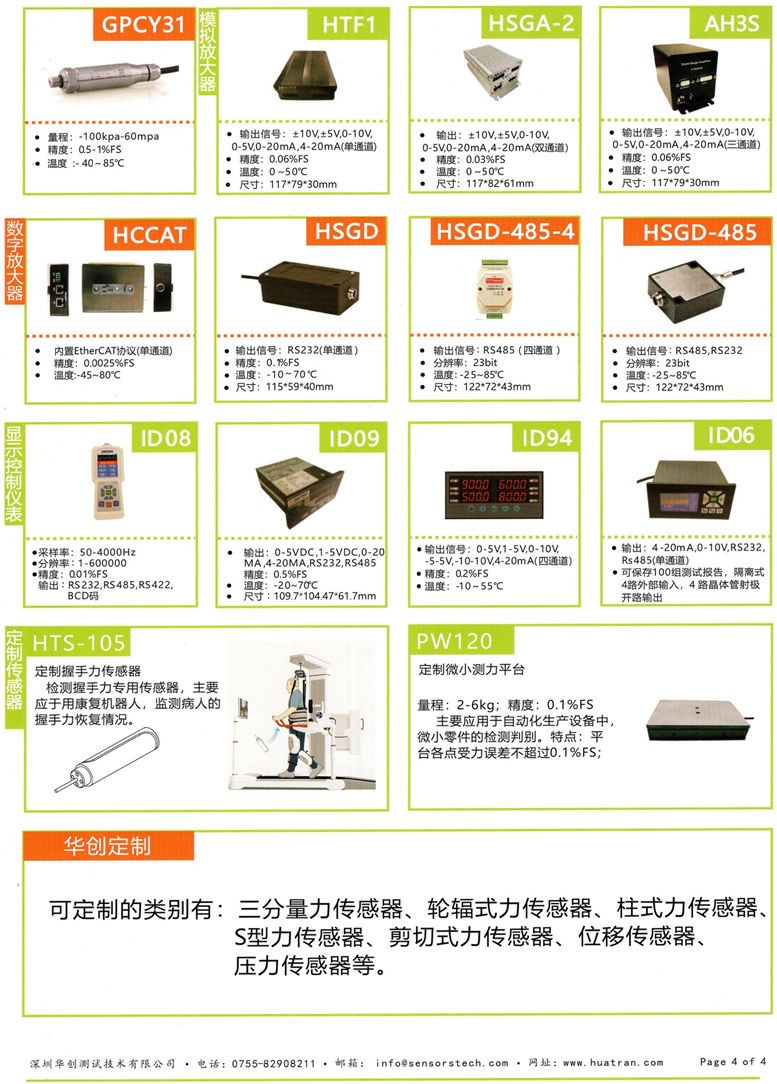 深圳華創測試技術有限公司 柱式單壓力傳感器_三軸力傳感器_單壓力傳感器