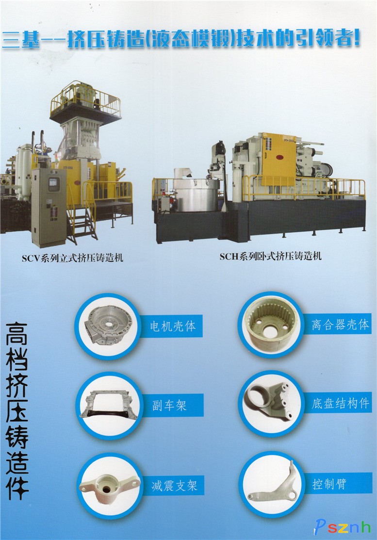 三基自主研發的壓鑄機、擠壓鑄造機及半固態成型鑄造機,已經成功為國內外數百家業提供了壓鑄生產整體解決方案。行業涉及汽車、摩托車、電子、通訊、航天航空、軍工、機械、電器、五金、家具、炊具、燈具等多個領域。