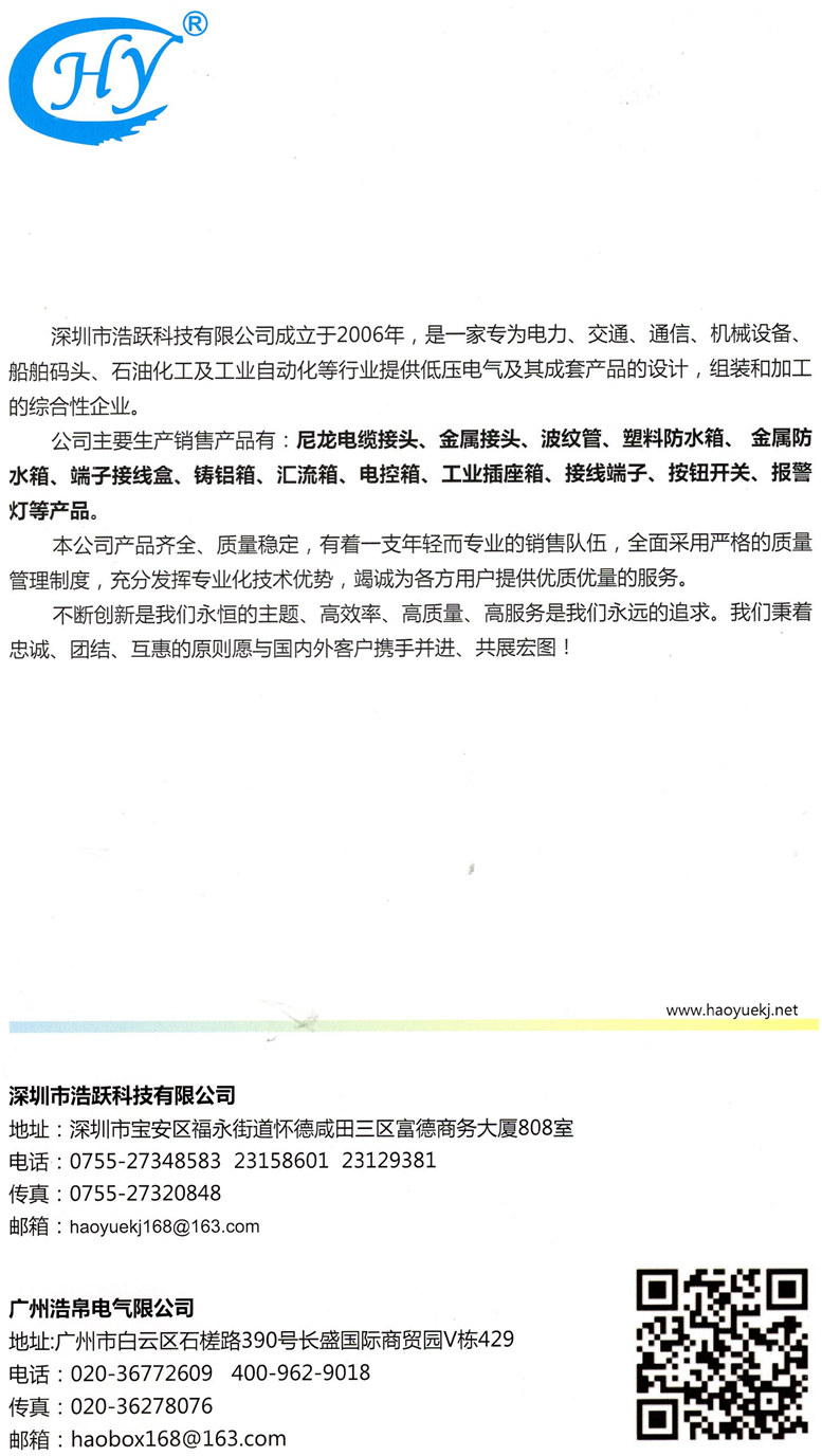 深圳市浩躍科技有限公司 電纜接頭 電纜固定頭 防水電纜接頭 浪管接頭 光伏匯線盒 塑料防水箱 密封箱 2018華南自動化展 SIAF展