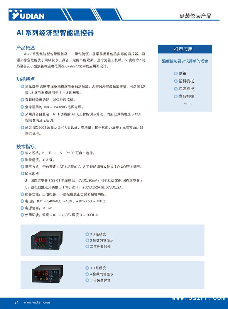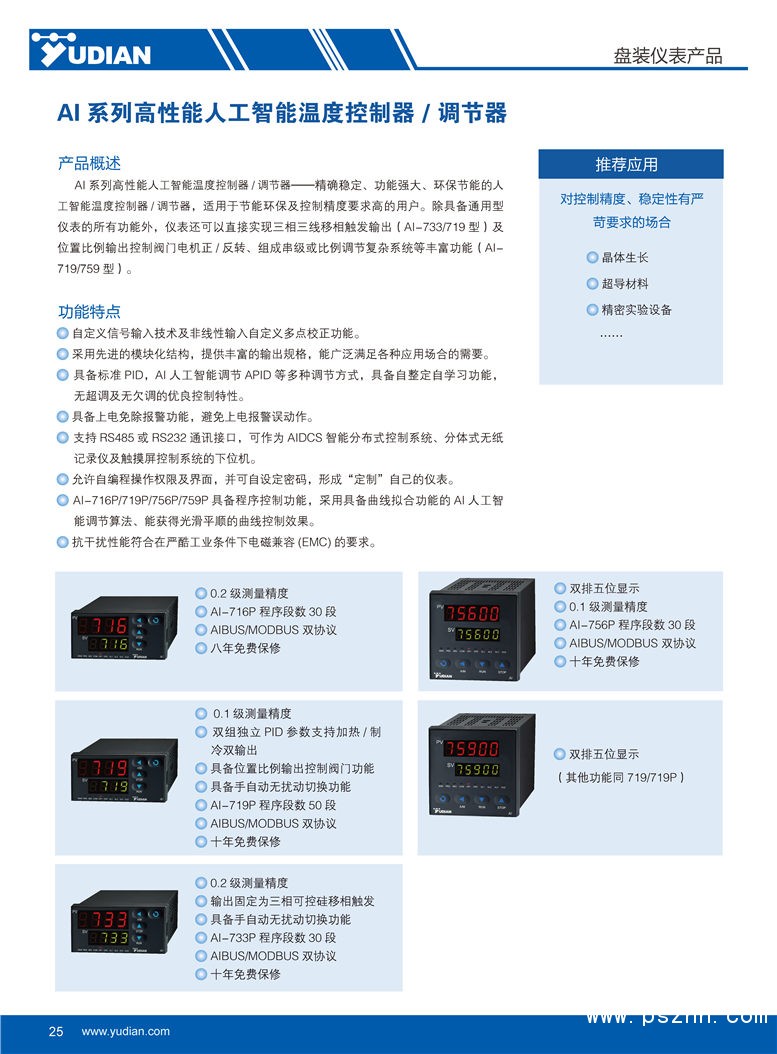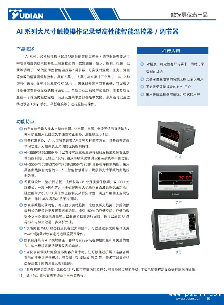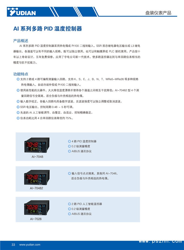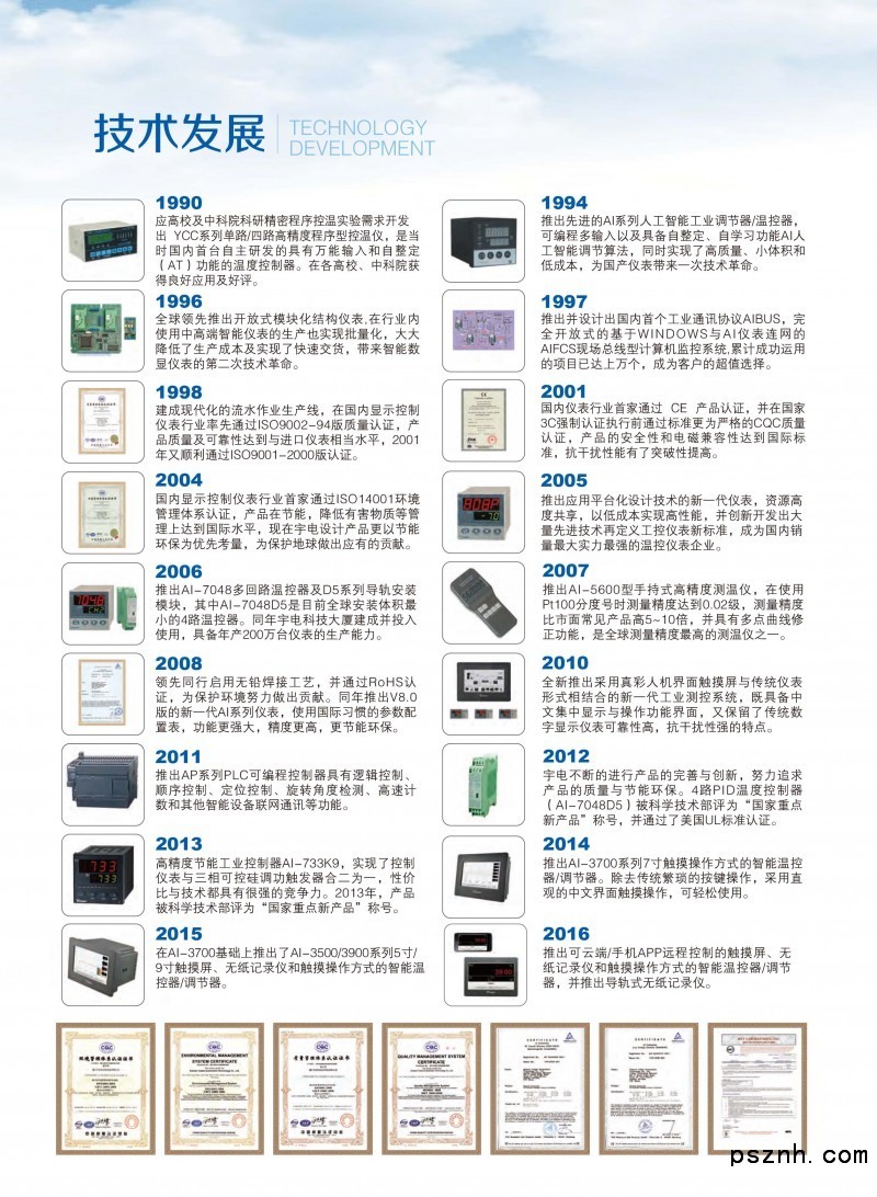 公司產品包括單路及多路測量顯示報警儀、流量積算儀、高精度PID調節器、智能溫控器、導軌安裝儀表、電力測量儀表、手持式精密測溫儀、閃光報警器、可控硅調功觸發器、SSR固態繼電器,分體式無紙記錄儀、觸摸屏控制系統及AIDCS智能分布式控制系統等,廣泛應用于化工、熱電、石化、制藥、冶金、機械、電爐、熱處理、食品、造紙、塑膠、包裝等領域。