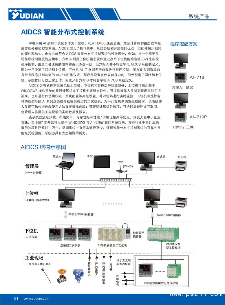 公司專注于高端節能環保解決方案的開發和研究,在工業自動化領域擁有累計超過20年經驗。全球領先推出AI人工智能調節算法、儀表模塊化和平臺化結構、節能環保低溫漂“發燒級”元件設計、380VAC電源防護等技術,有力地推動了自動化行業的發展。AIDCS智能分布式控制系統采用AI系列溫控器,利用RS485或CAN作為通訊總線,結合工控機和組態軟件組成,具備集中管理、危險分散、系統開放、性價比高等優點,深受中小企業青睞,目前累計成功運用的項目已達上萬個,成為客戶的超值選擇。