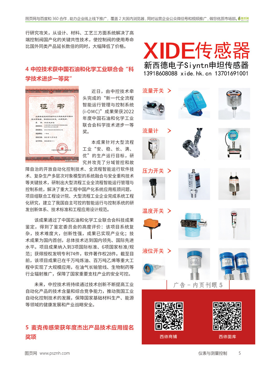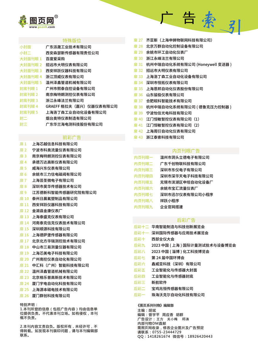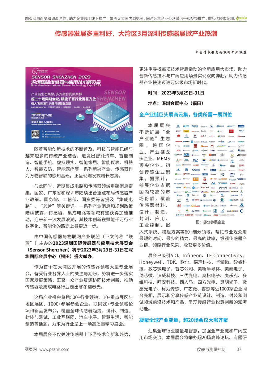 2023年深圳傳感器及電池展特刊索引《儀表與測量控制》第一期