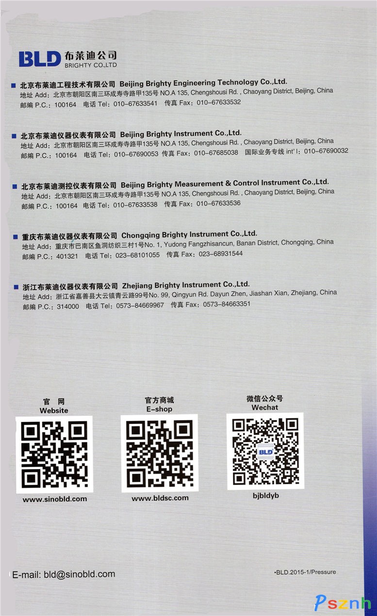 本公司具有生產規格品種多,加工工藝精良的特點。特別是在微小壓力的測量,單、雙膜合微壓表的制造;化學密封及世界先進的等離子、激光、無氧焊接工藝在產品上的應用方面更具特色。 為滿足不同用戶的要求,布萊迪公司可為用戶提供多種標準的產品,如中國GB標準;日本JIS標準;歐洲DN標準;美國及北美標準等。為出口上述國家和地區,公司除開發以上幾種標準的螺紋接體,法蘭接體外,還為這幾種不同標準地區生產各種儀表的外殼、防爆耐震表體及其它儀表的另部件。公司的部分產品并完成了“UL、CE”安全認證。 布萊迪公司1998年通過摩迪國際認證公司的ISO9001質量體系認證;是北京市外商投資的先進技術企業;并自2002起一直成為北京市的高新技術企業。 布萊迪公司產品在國內銷售市場不斷擴大的同時,其產品還遠銷到了以東南亞、歐洲、北美洲為主的境外20多個國家和地區。 本著“優質、服務、高效、創新”的方針,布萊迪公司的全體員工時刻準備為全球的廣大新老客戶提供優良的產品和周到的服務。