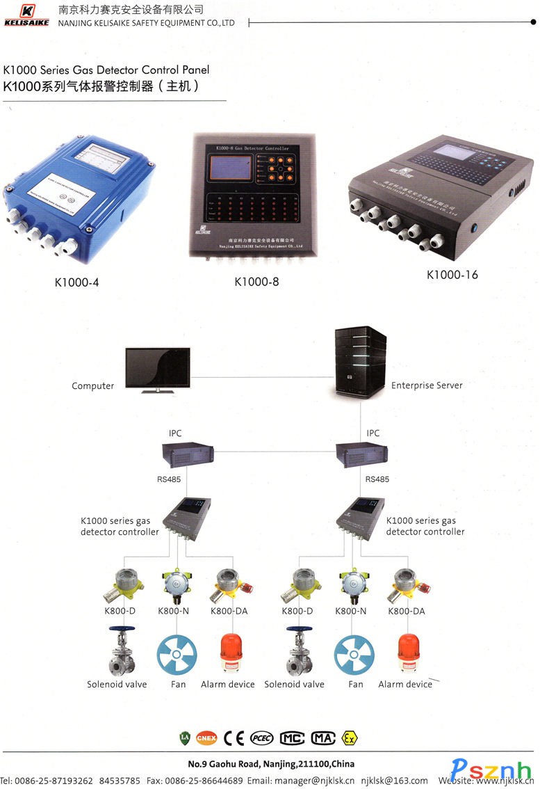 南京科力賽克安全設備有限公司充分發展自主知識產權和專利的新技術、新產品,包括:K60系單一氣體及多種氣體便攜式檢測報警儀、K800系固定式氣體檢測變送器、K500系單點壁掛式氣體檢測報警器、K1000系氣體檢測報警儀主機、K-1AX型計算機氣體智能監控系統KL-100系氣體分析儀,以及KL99系正壓式空氣呼吸器。其中防爆產品均通過國家指定檢驗機構通過,取得防爆合格證。便攜式氣體檢測報警器獲得國家發明專利。公司產品順利通過ISO9000質量體系認證、CMC生產許可證、中華人民共和國制造計量器具許可證,特種勞動防護用品安全認證、消防認證、 CE認證,產品設計、生產、服務都得到規范嚴格的控制,保證了產品的優良品質。