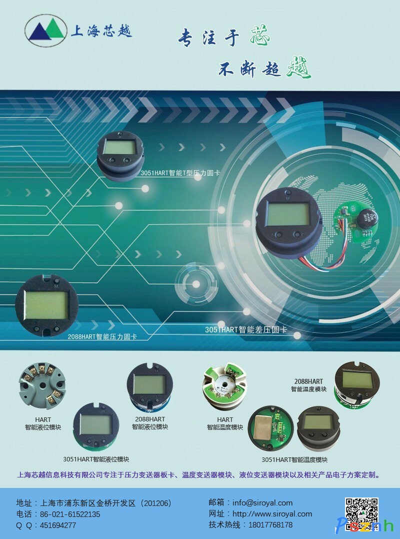 壓力變送器板卡 _溫度變送器模塊_ 液位變送器模塊_工業自動化儀表-上海芯越信息科技有限公司