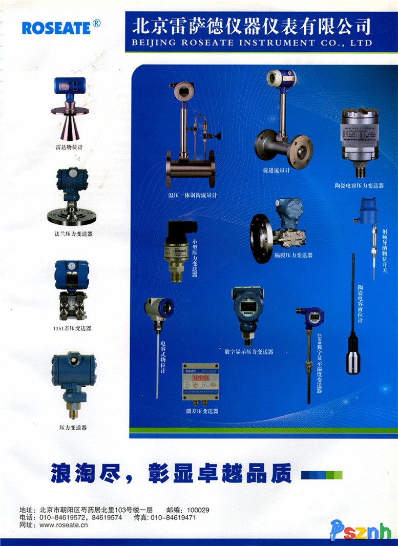 北京雷薩德儀器儀表有限公司成立于1999年,是工業(yè)自動(dòng)化儀表的專業(yè)生產(chǎn)廠家,主要產(chǎn)品有漩進(jìn)流量計(jì)、渦街流量計(jì)、電磁流量計(jì)、壓力變送器、差壓變送器、微差壓變送器、電容式液位計(jì)、射頻導(dǎo)納物位計(jì)、雷達(dá)物位計(jì)、低溫罐液位計(jì)、微壓傳感器和一體化溫度變送器等產(chǎn)品。高質(zhì)量傳感器和先進(jìn)的儀表技術(shù),在我們的國防事業(yè)中發(fā)揮著不可替代的作用,部分產(chǎn)品遠(yuǎn)銷北美等儀表技術(shù)發(fā)達(dá)地區(qū)。