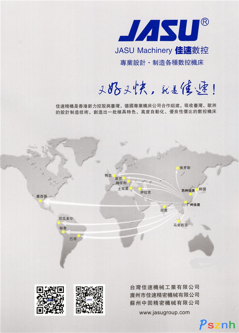 佳速產(chǎn)品遍布全國三十多個省市和自治區(qū),產(chǎn)品出口到世界五十多個國家和地區(qū)。佳速精機秉承“又好又快,就是佳速”的品牌理念,致力于為客戶制造優(yōu)良性價比、優(yōu)越性能的產(chǎn)品,用一流的服務和質量,為企業(yè)創(chuàng)造利潤,為客戶創(chuàng)造價值。