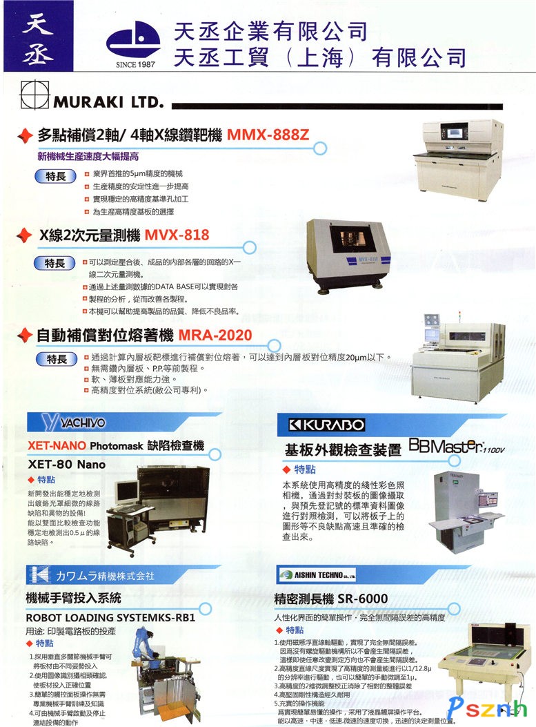 | 本公司設備代理部門系電子相關生產設備及售后服務為主,初期將日本制設備引介到臺灣、中國、香港、東南亞客戶為主,近年臺灣制設備技術水準大幅提高,因應客戶投資地變遷,引介推薦臺灣優良廠商設備,大幅降低客戶投資成本,獲得各國客戶良好,生產的產品有回響。 | ||