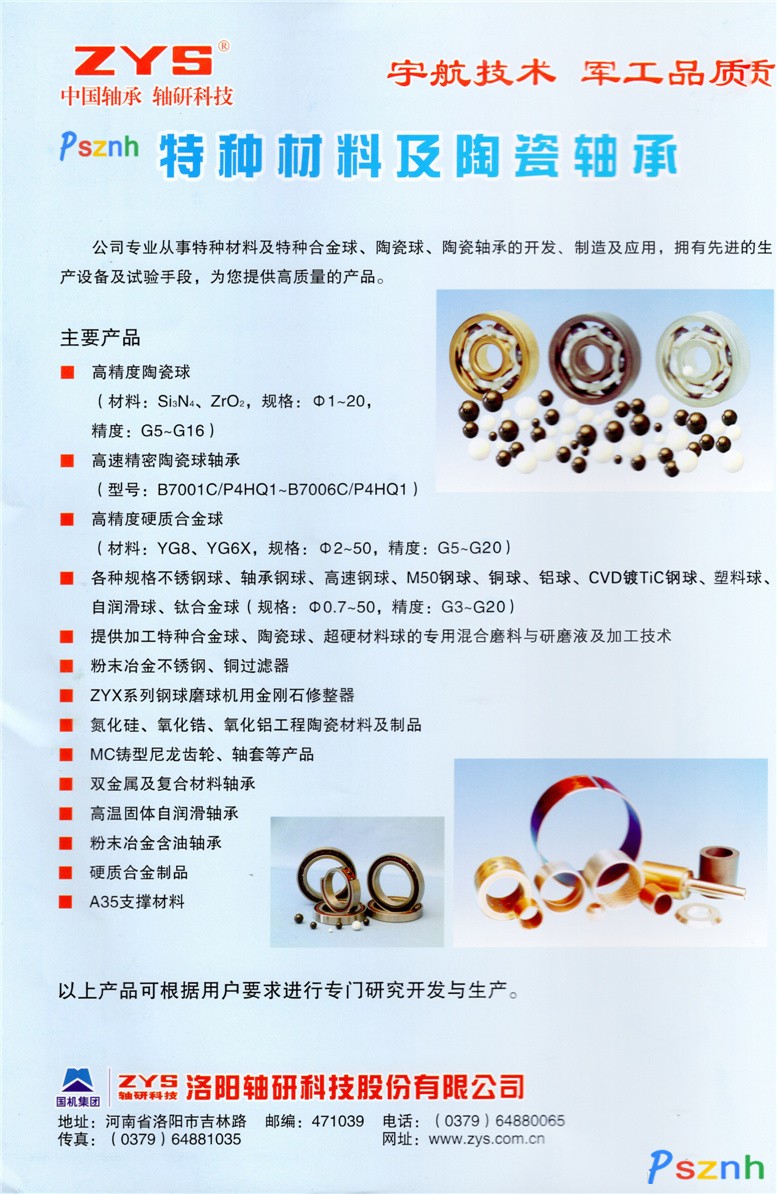 公司重點為國民經濟和國防建設關鍵主機研制高性能軸承產品,批量生產內徑0.6毫米至外徑6.8米的各種類型的軸承產品和組件。主要業務為精密及特種軸承、高速機床主軸、軸承專用裝備和檢測儀器、軸承試驗機以及軸承特種材料的研究、開發、生產和銷售。產品廣泛應用于航空航天、艦船兵器、機床工具、風力發電、礦山冶金、石油化工、醫療器械、汽車與軌道交通、工程機械等各個領域。