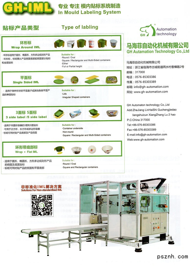 GH自主研發、生產并銷售了400余套各種系列的模內貼標(IML)系統。成熟的擁有一模八穴以上的各式貼標方式:平面標、環形標、三面和五面標、環形加底面標。我們最大可進行1M×1M桌面平面標、20L圓桶環形標。