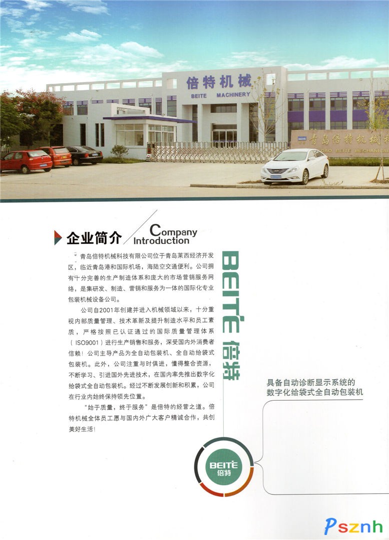 青島倍特機械科技有限公司(中韓合作)最早創建于2001年,位于青島萊西經濟開發區,臨近青島和國際機場,海陸空交通便利。公司主營數字化全自動給袋式包裝機。該新型包裝機主要應用于食品,醫藥、洗化等領域中各種顆粒狀、粉狀、醬體物料的自動稱重與包裝。           自進入機械領域,公司十分重視內部質量管理、技術革新及提升制造水平和員工素質,嚴格按照已認證通過的國際質量管理體系(ISO9001)進行生產、銷售和服務,深受國內外消費者信賴!公司主導產品為全自動包裝機、全自動給袋式包裝機、旋轉給袋式包裝機。此外,公司注重與時俱進,懂得整合資源,不斷學習,引進國外先進技術,并與韓國優秀機械企業建設技術合作關系。           經過不斷發展創新與積累,公司在行業內始終保持領先位置,先后被評為[促進經濟建設先進單位]、[自營出口先進企業]、[誠信百佳企業]、[山東省明星企業]、[山東省高成長型民營企業]、[省文明單位]、[守合同 重信用單位]等榮譽稱號。           “盡最大努力為客戶創造額外價值”是倍特的經營之道。倍特機械全體員工愿與國內外廣大客戶精誠合作,共創美好生活!