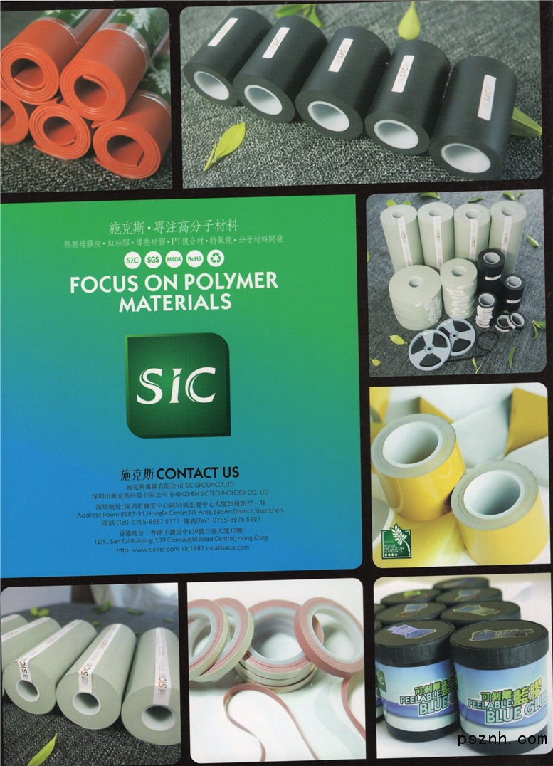 深圳市施克斯科技有限公司前身是德國 SIC Silicone materials institute(硅材料研究事物所),成立于1981年6月,位于德國科特布斯市蒂姆大街37號,是專業從事Silica gel 硅材料的環保應用與再生研究開發的機構,致力于新材料應用上穩定性、安全性的深度測試,SIC嚴謹的科學態度,使其對硅材料物理結構與化學特性有更加細致的掌控,為硅材料在世界“綠色工業”的推廣應用的進程上作出貢獻。 2010 年 SIC 在中國成立施克斯(SIC),并在深圳設立銷售公司(深圳市施克斯科技有限公司),專業對各類硅橡膠類產品、硅膠聚合物制品進行研發、生產及貿易。 目前施克斯(SIC)在中國銷售的產品有:熱壓硅膠皮、SIC紅色硅膠緩沖墊、SIC綠色硅膠緩沖墊(綠硅膠)、特氟龍膜、導電硅膠片、防靜電硅膠片、耐高溫硅膠片、柔性線路板用無油硅膠板等各種高性能硅橡膠聚合物產品。