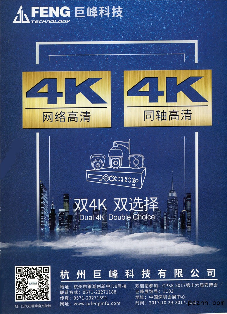 杭州巨峰科技有限公司位于杭州市濱江富陽區,是業內最具發展潛力的高新技術企業,以領先的監控產品創新技術為核心競爭力,致力于提供高品質、高性價比的安防產品和點到點的優質服務。 自2008年創建以來,公司憑借獨特的眼光和對市場動態的準確把握,逐步形成了以“研發”為核心,集生產、銷售、服務于一體的高新技術企業。