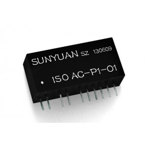 SunYuan SY系列交流轉直流(AC/DC)信號低成本兩隔離變送器,是一種將交流信號采集轉換成線性對應直流信號的混合集成電路。該電路在同一芯片上集成了一組多路高隔離的DC/DC電源和一組AC/DC信號轉換電路。可以將傳感器(交流互感器)采集到的0-1Vrms(50~60HZ)工頻信號按比例轉換成4-20mA/0-10mA /0-20mA直流電流信號或0-1V/0-2.5V/0-5V/0-10V直流電壓信號。IC封裝的產品可通過匹配外接交流互感器組成單相或多相全隔離變送器,實現信號輸入、輸出信號與輔助電源之間的3KV三隔離。