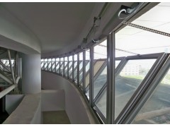 新式玻璃百葉窗遮陽系統,完美上演“遮陽、裝飾、自然風景”三重奏。玻璃百葉通透性好,葉片選用透明或者磨砂玻璃等不同的材料,可以取得不同的視覺效果。玻璃百葉可以代替玻璃幕墻使用,既克服了幕墻不能開啟的缺憾,又保持了晶瑩剔透。