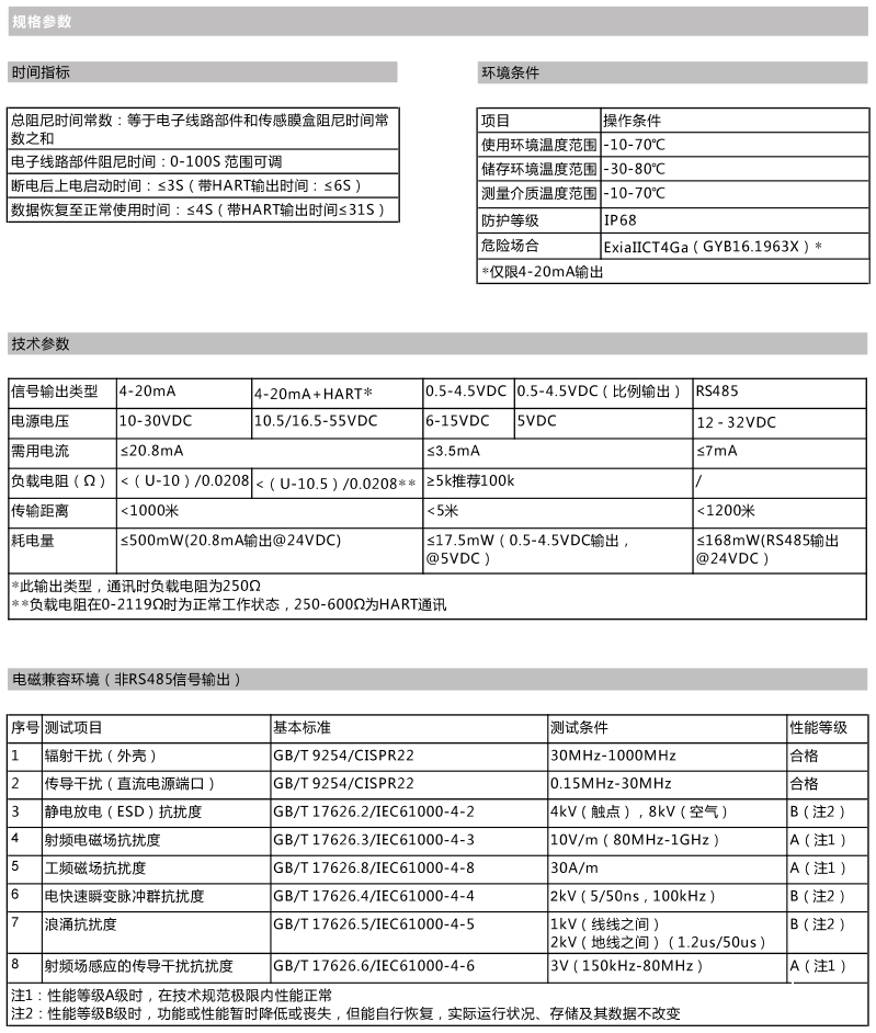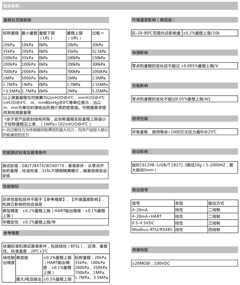 - 4-20mA,4-20mA+HART,0.5-4.5VDC