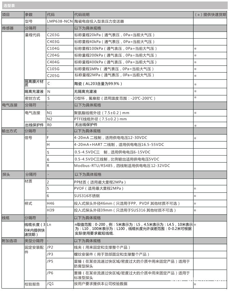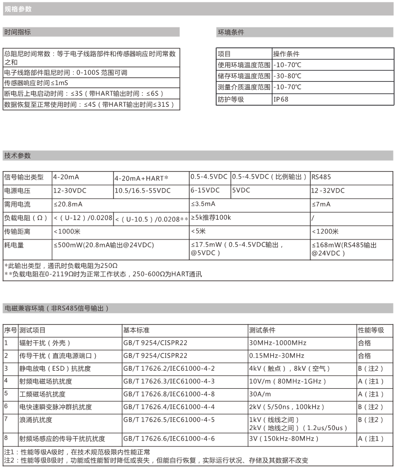 - 4-20mA,4-20mA+HART,0.5-4.5VDC