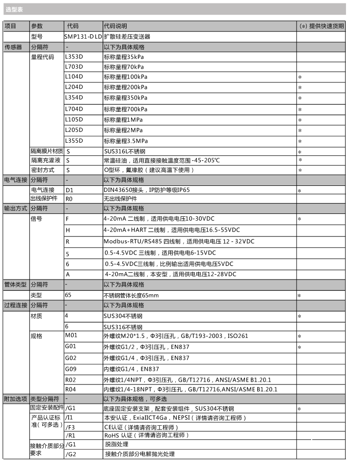 - 4-20mA,4-20mA+HART,0.5-4.5VDC