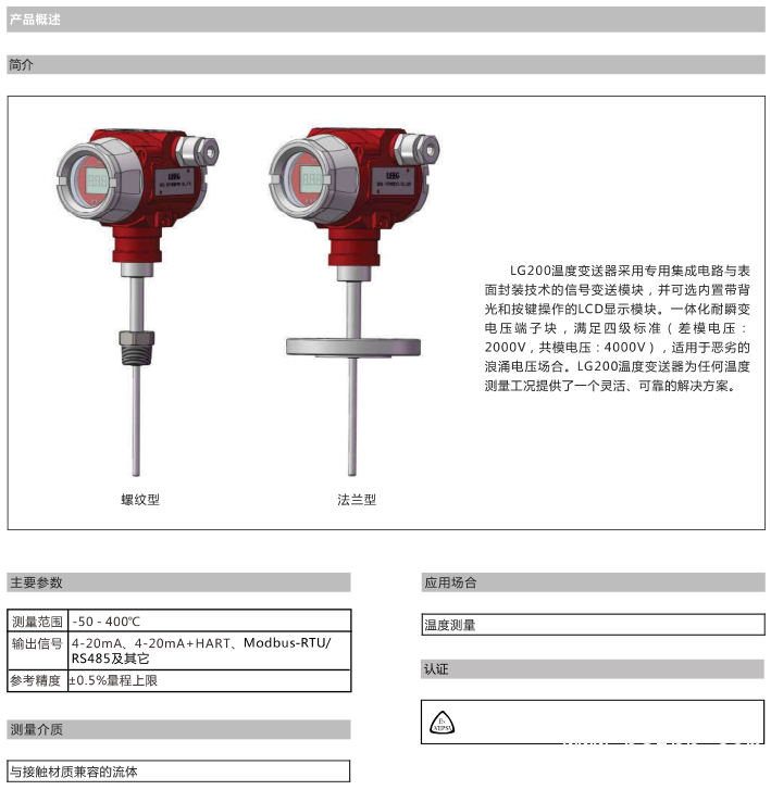 本網頁所展示的有關【LEEG立格LG200-WRT一體化熱電阻溫度變送器】的信息/圖片/參數等由的會員【上海立格儀表有限公司 】提供,由圖頁網會員【上海立格儀表有限公司 】自行對信息/圖片/參數等的真實性、準確性和合法性負責,本平臺(本網站)僅提供展示服務,請謹慎交易,因交易而產生的法律關系及法律糾紛由您自行協商解決,本平臺(本網站)對此不承擔任何責任。您在本網頁可以瀏覽【LEEG立格LG200-WRT一體化熱電阻溫度變送器】有關的信息/圖片/價格等及提供 【LEEG立格LG200-WRT一體化熱電阻溫度變送器】的商家公司簡介、聯系方式等信息。