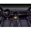 保時捷Panamera鱷魚皮內飾改裝,是它的內飾變化,一旦你打開車門你就可以發現,整個車內飾采用了碳纖和鱷魚皮的主題,采用真正的鱷魚皮飾,并帶有鉆石的拼接,另外,踏板,杯架,變速桿區,門把手,通風口,以及大多數按鈕都已經采用了金色裝飾,而且還使用了大量的碳纖維材質。尊貴豪華內飾!