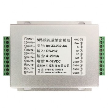 選型舉例2: 型號:IBF8-U1-232 表示8路0-5V信號輸入,輸出為RS-232接口