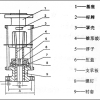 我廠生產的流量計有基型LZB系列。它們主要有錐形玻璃管、浮子、上基座、下基座、上止檔、下止檔、支承板、外罩、密封圈等組成。均采用法蘭接(法蘭接GB2555—81鑄鐵法蘭規定)。通徑50mm以上流量計帶導桿,能使浮子上下移動穩定,并保護錐形玻璃管,以免碰損。結構見圖2—1,外型與連接尺寸見表1,