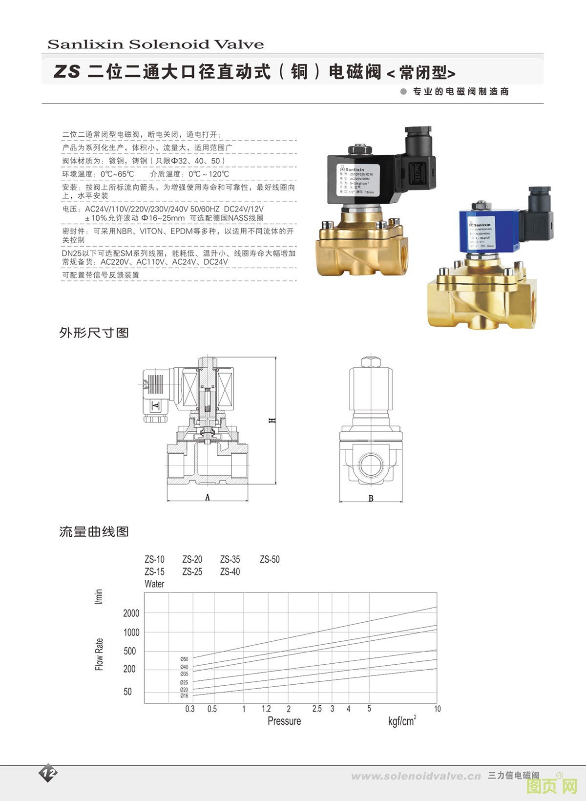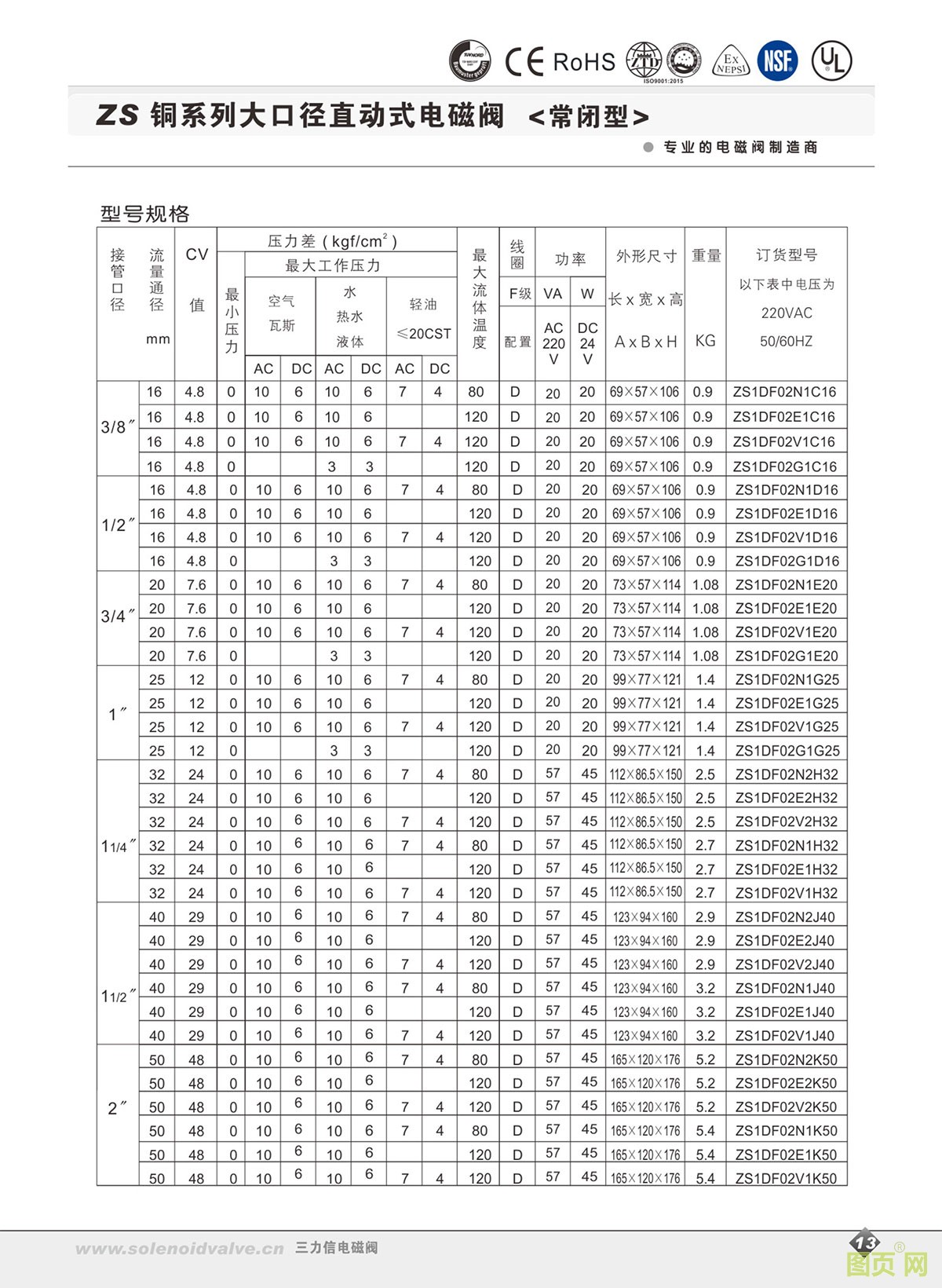 ZS二位二通大口徑直動式電磁閥/常閉型